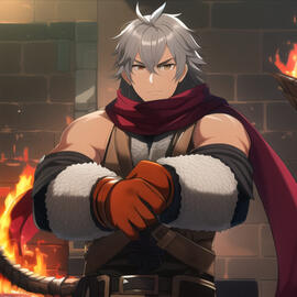 He always keeps a pair of work gloves on his person, in case he feels generous enough to help somebody out. It isn’t often, but there are some occasions.• Despite being cold most of the time, Leon can eventually come around if given long enough.• Thanks to his father’s care, Leonidas has quite a lot of smarts in that brain of his. His modern look, straight from the slums, wouldn’t make one any the wiser, though. Not that he minds appearing dumber than he looks.• A bit of a “Momma’s Boy”, seeing as he’s never really had a mother to call his own. As such, he’s a bit scatter-brained when it comes to interacting with women older than him (especially if he finds them attractive...or the other way around.)• Living on the streets gave him skills he wouldn’t otherwise have, had he grown up in the noble quarter. One of these is his skill of sleight of hand, as there are many times where he’ll need something and have to snatch it by any means necessary, be it on somebody’s person or simply sitting around. He’s by no means perfect at this, though, as somebody with a sharp eye could catch him.